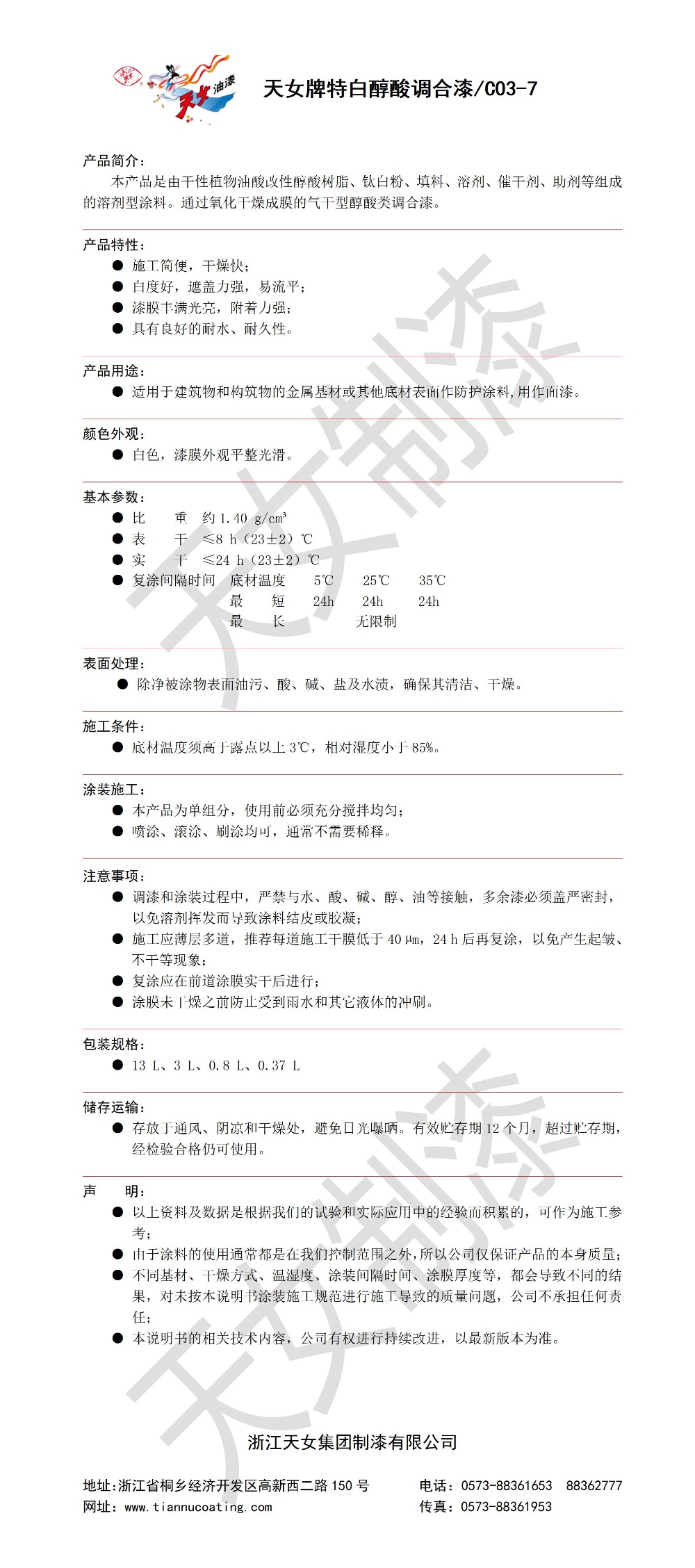 产品名称:特白醇酸调合漆c03-7