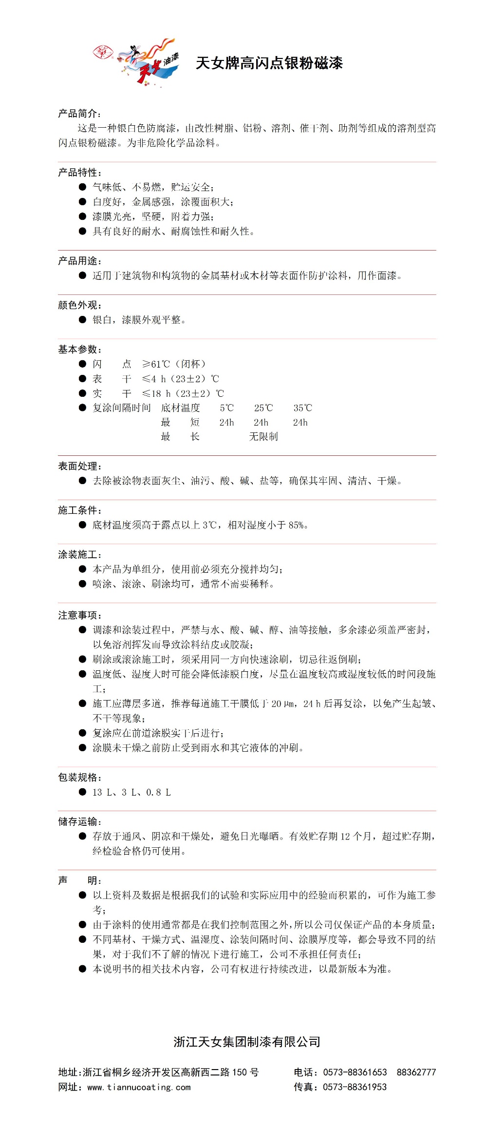 产品名称:高闪点银粉磁漆